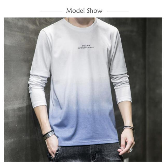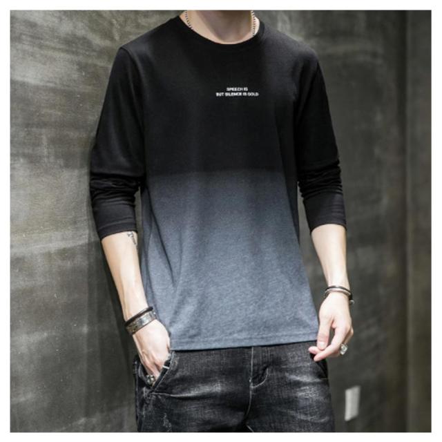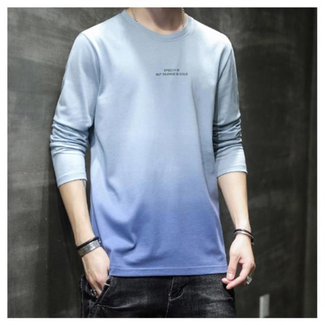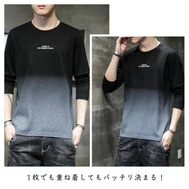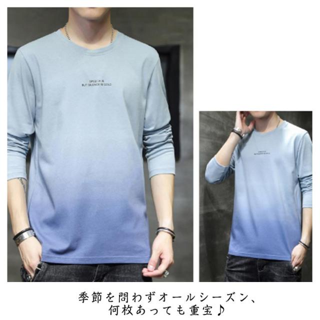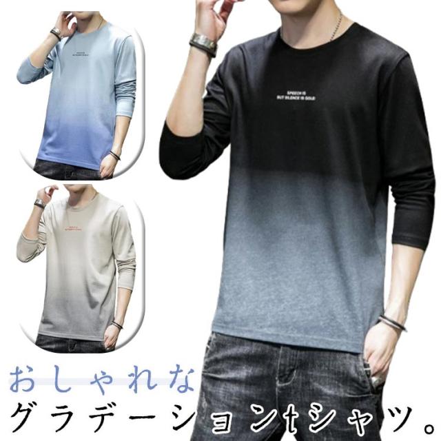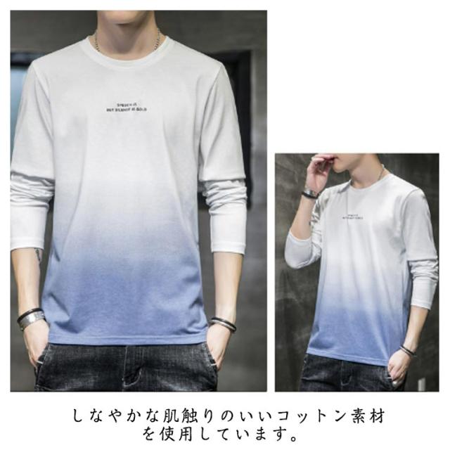 コットン 長袖tシャツ ロングティーシャツ tシャツ ロングT ラウンドネック カットソー メンズ グラデーション トップス おしゃれ 秋服 春服 カジュアル 男性
