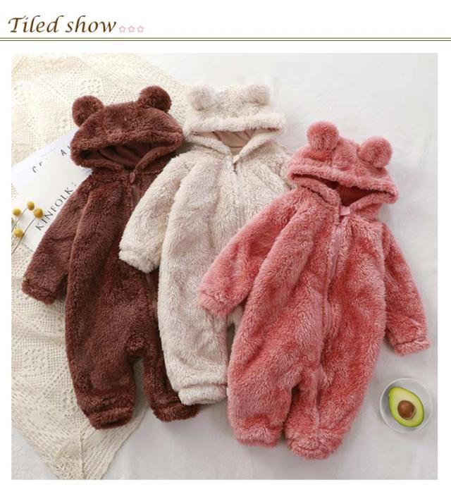 子供 着ぐるみ もこもこ 起毛 カバーオール ロンパース ジャンプスーツ ベビー 出産準備 ジャンプスーツ 耳付き 防寒 くま アウター ベビー服 新生児 冬 秋 プレゼント 冬用 誕生日プレゼント クリスマス 出産祝い 赤ちゃん ギフト 女の子 男の子