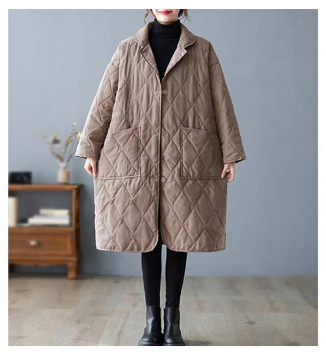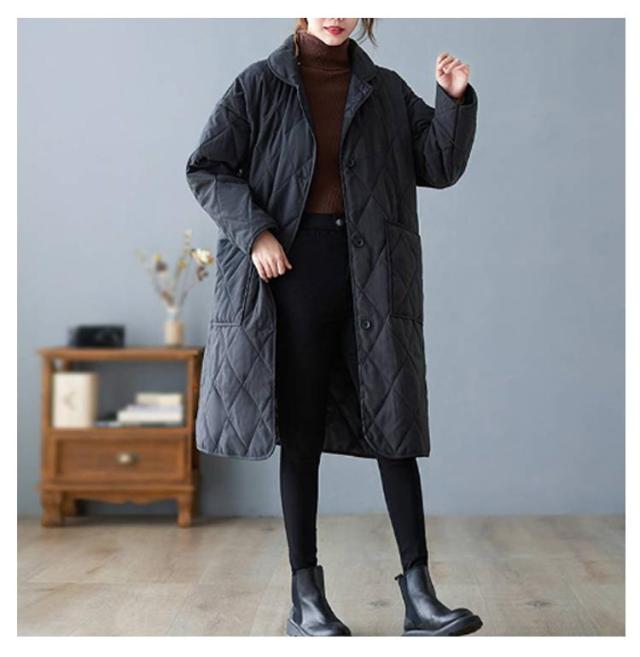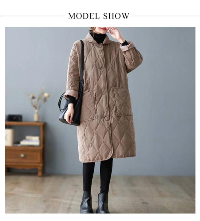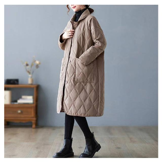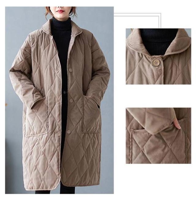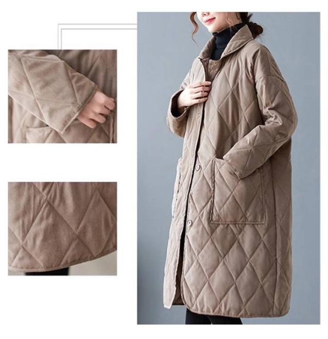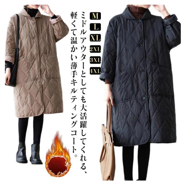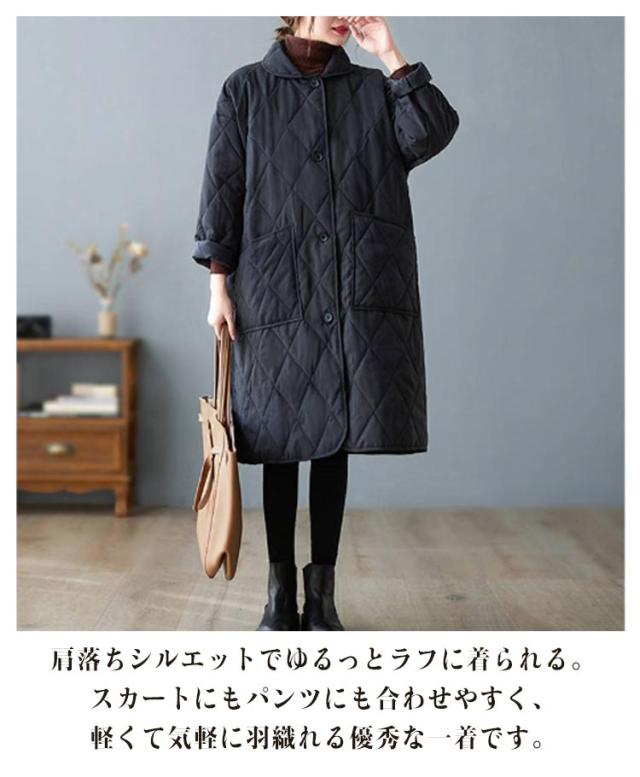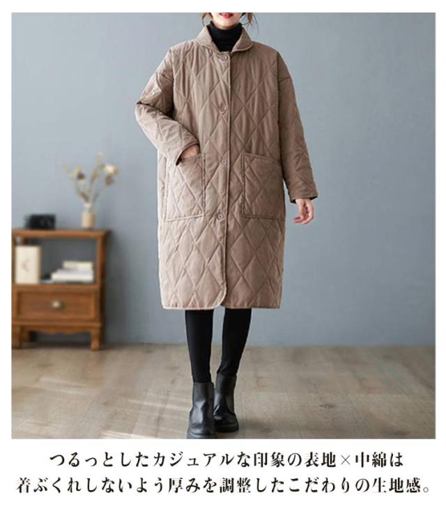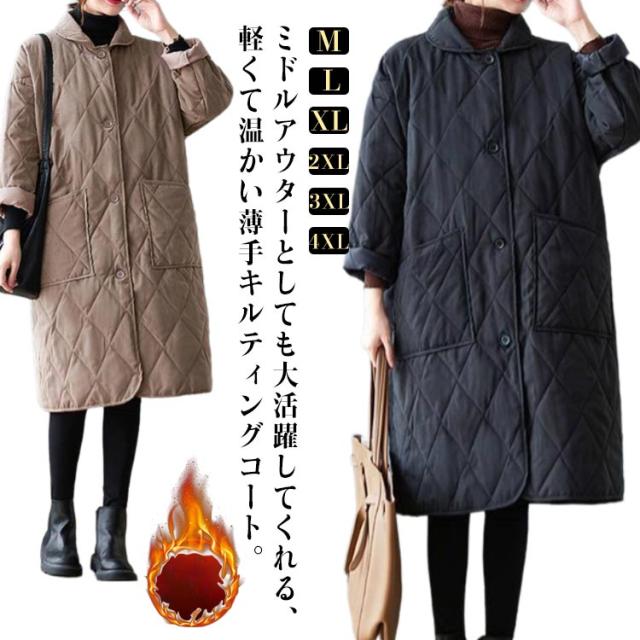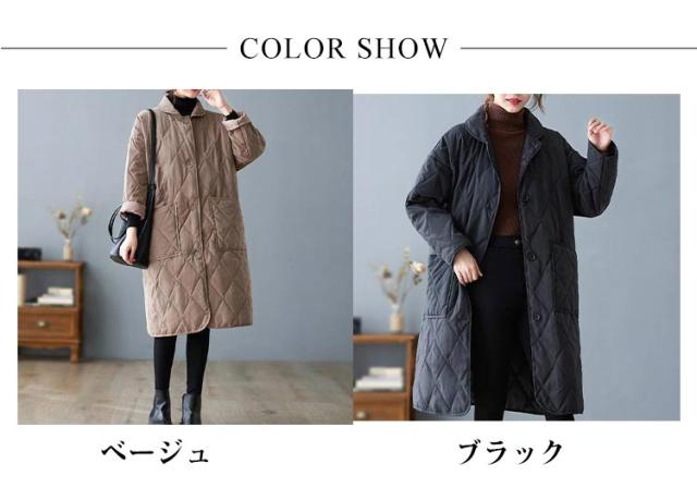 襟付きキルティングコート レディース コート ジャケット アウター ロングコート ブルゾン 中綿 キルティング アウター 羽織り 上着 ジャケット 中綿コート 防寒コート 大きいサイズ ゆったり 秋 冬 送料無料 ブラック ベージュ