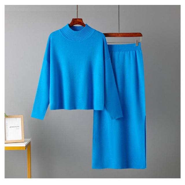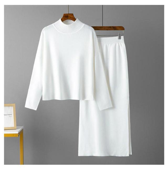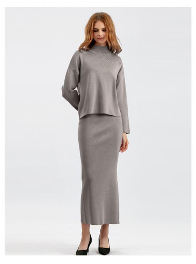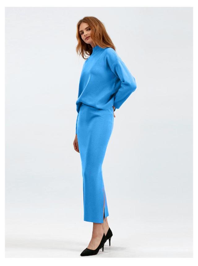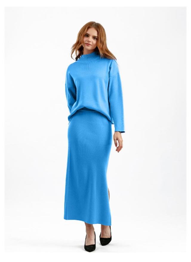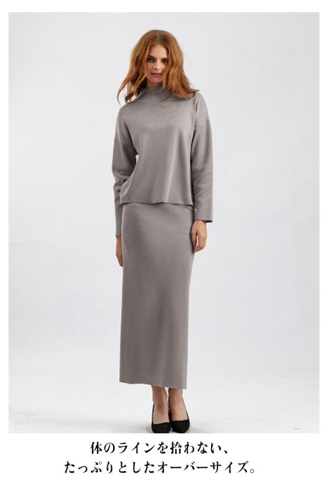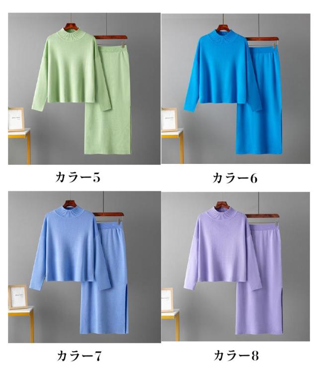 ニット セットアップ スカート 上下セットアップ スカートセット レディース ニットアップ プルオーバー トップス ボトムス スカート 長袖 ハイネック セーター ゆったり感 スリット スカートスーツ ロングスカート Hライン ニットスカート 無地 カジュアル 秋 冬