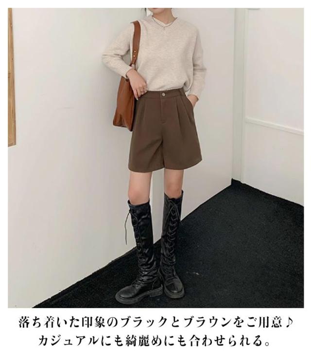 | ロングブーツやトラックソールと相性抜群な程よい丈のハーフパンツ。 フロントにタックが入って裾に向かって少し広がっているキュロットのようなシルエットです。 ハイウエストが腰回りをすっきりと見せてくれ脚長効果も◎足を露出することに抵抗がある方でも挑戦しやすい丈感です。 落ち着いた印象のブラックとブラウンをご用意♪カジュアルにも綺麗めにも合わせられる。 秋冬ムードたっぷりなウールライク素材を使用しています。きれいめに着こなせるキュロットパンツは秋冬のコーデにプラスしたいアイテム。 | |