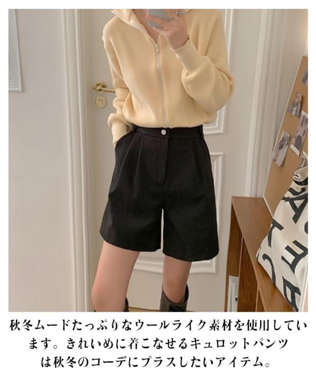 ウール調 キュロットパンツ レディース ハーフパンツ ボトムス ズボン パンツ キュロット ショートパンツ ウールライク ウール風 短パン 暖かい ストレッチ Aライン ハーフ丈 ショート丈 ハイウエスト お洒落 すっきり 送料無料