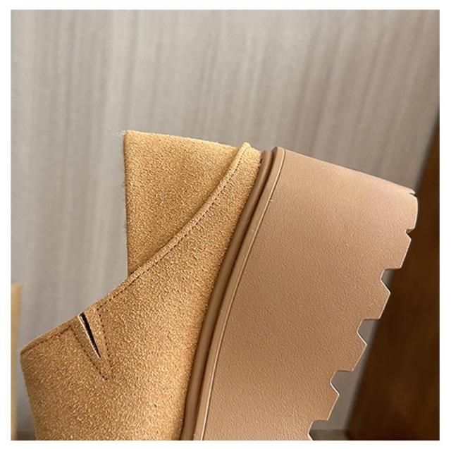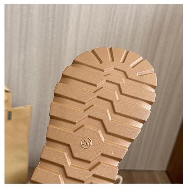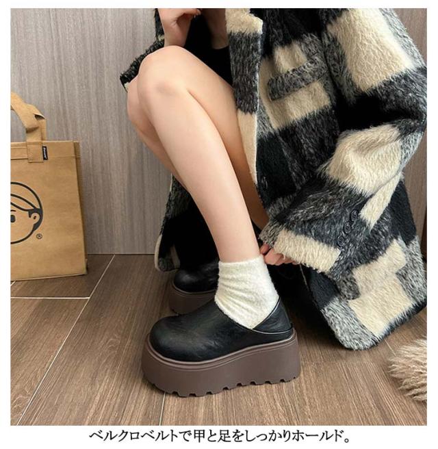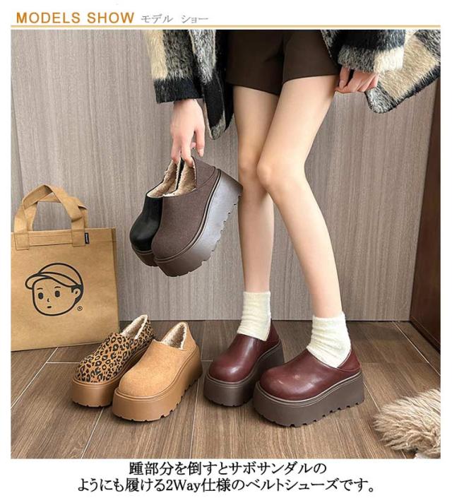 | 踵が踏める2way 暖かい裏ボア 踵部分を倒すとサボサンダルのようにも履ける2Way仕様のベルトシューズです。 ボリュームのある質感なので足元を華奢に魅せる効果も期待できます。 ベルクロベルトで甲と足をしっかりホールド。 ブラックソールでクールに仕上げつつも、丸いつま先で可愛らしさもある一足です。 | |