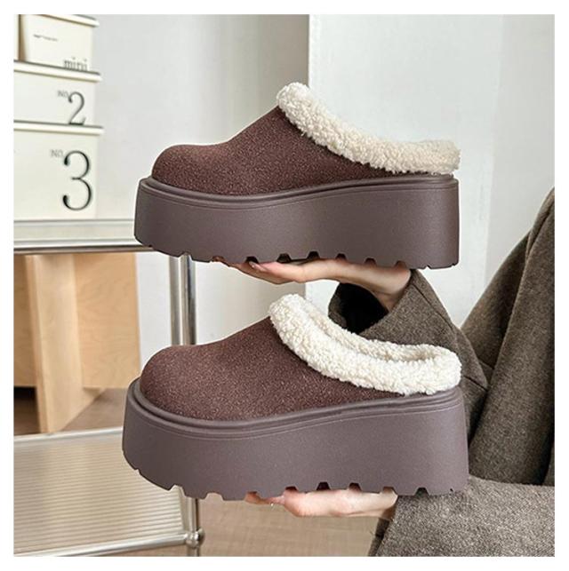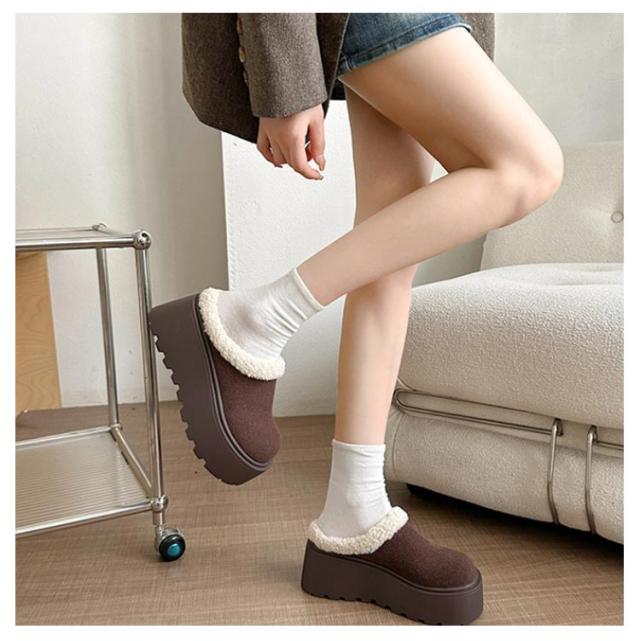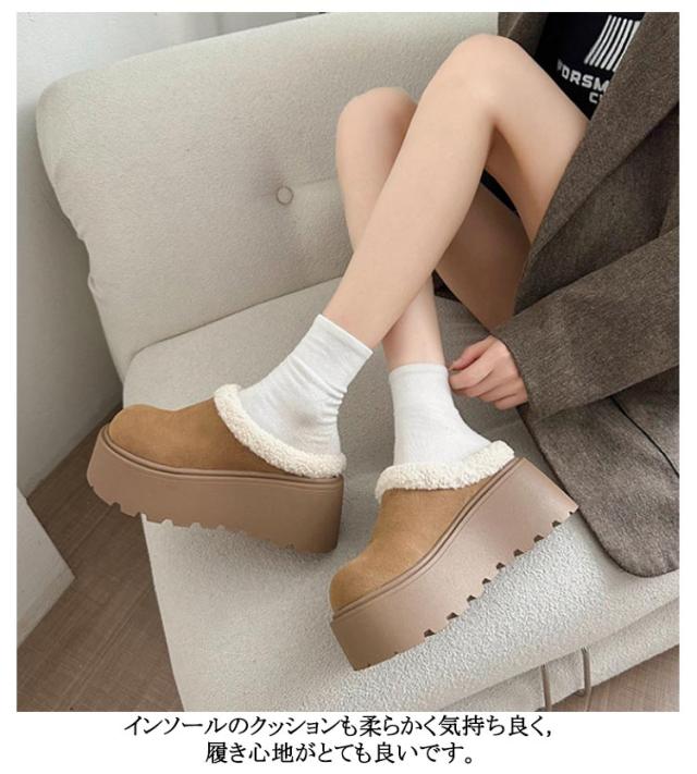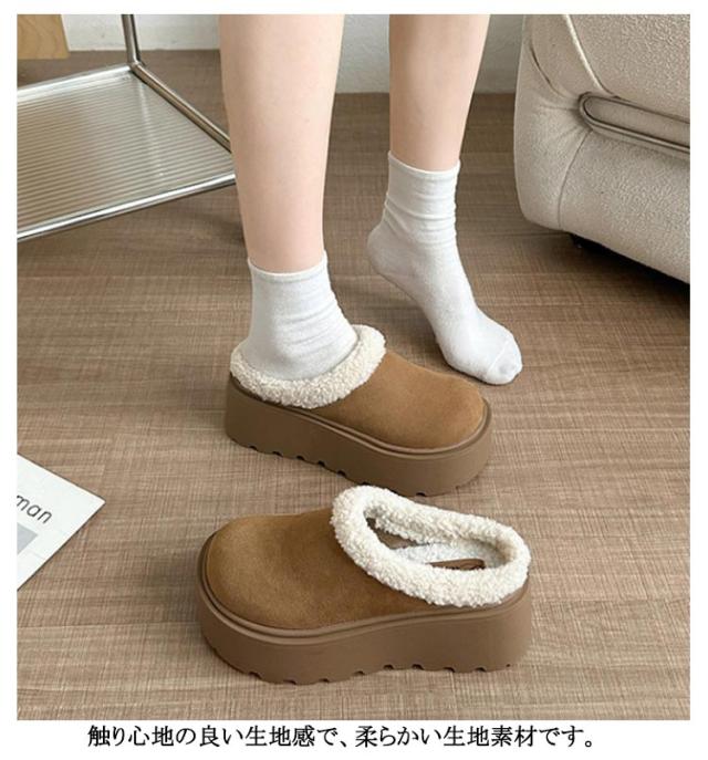 厚底 歩きやすい サンダル 冬 サンダル 厚底 厚底 8cmソール ファーサンダル 安定感 サボ ボア付き ファー付き 滑り止め サンダル スエード 疲れにくい オフィス サンダル つっかけ スリッパ