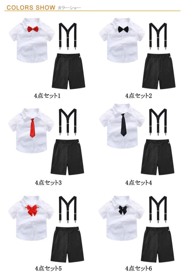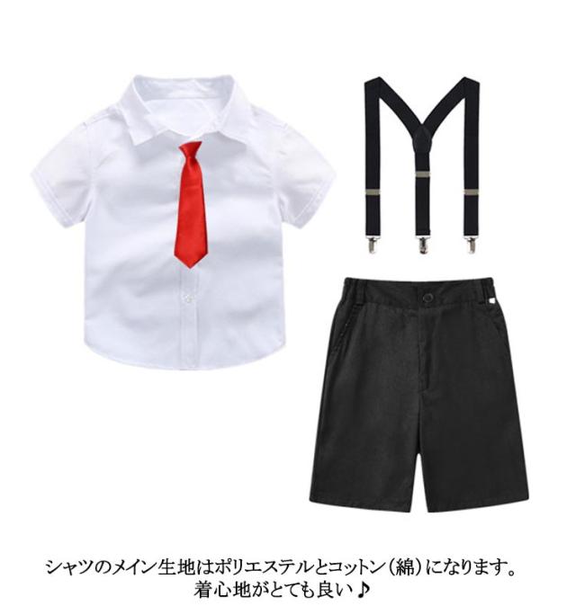 キッズ 子供服 フォーマル スーツ ハーフパンツ ウエストゴム 夏 半袖 フォーマル ショートパンツ サスペンダー 4点セット 男の子 100cm-180cm キッズ 男の子 ジュニア 入学式 卒園式 卒業式 お受験 発表会 結婚式 フォーマルスーツ こども パンツ ズボン