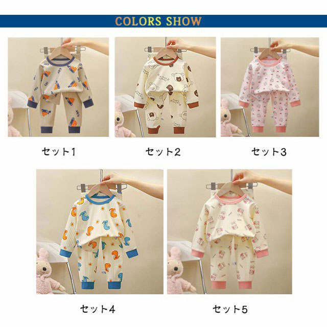 | 【長袖パジャマ】【80〜150cm】【13color】 可愛い子供用長袖パジャマです。 お家の中でも可愛く気分もアップ! 13色からお選びいただけます♪ ボトムは動きやすいゴム仕様で着脱もしやすい♪ | |