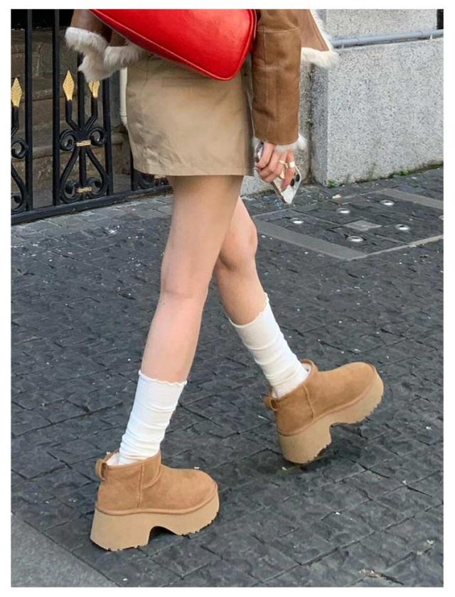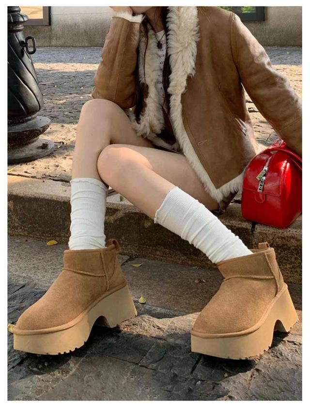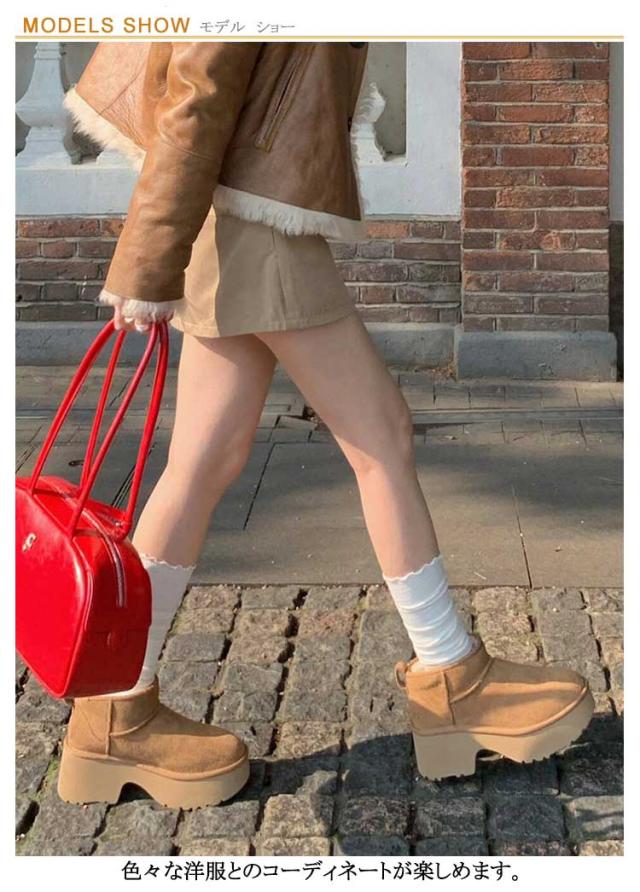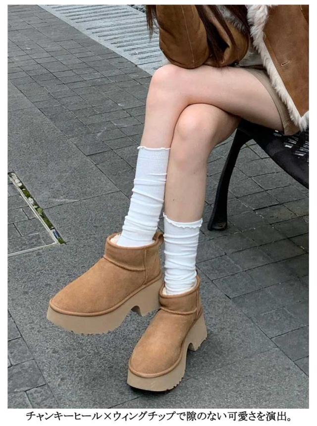 ボア レディース ショート ムートンブーツ 厚底ブーツ 撥水 ムートンブーツ 厚底 レディース ブーツ ショート 防寒 雪 ムートンブーツ 雨 チャンキーヒール5cm 厚底ムートン ブラウン 旅行 レジャー 暖かい あたたかい 厚底 ファー ショートブーツ レディース 靴 スエード