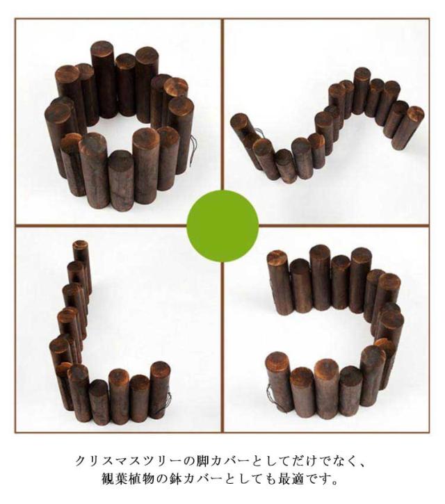 | 天然木を使用したクリスマスツリーの足元を隠すウッドフェンス。【長さ120cm】 クリスマスツリーの足元にクリスマスツリーの寂しい足元をおしゃれに隠すことが出来ます。 本物の丸太で存在感抜群!本物の丸太を使用しているので、足元からクリスマスツリーが綺麗に見えます。 ウッドフェンスひとつで、簡単に北欧風ツリーの雰囲気が味わえます。 あえて長さが異なる丸太を使用し、無造作で奥行きのある雰囲気に仕上げました。 クリスマスツリーの脚カバーとしてだけでなく、観葉植物の鉢カバーとしても最適です。 | |