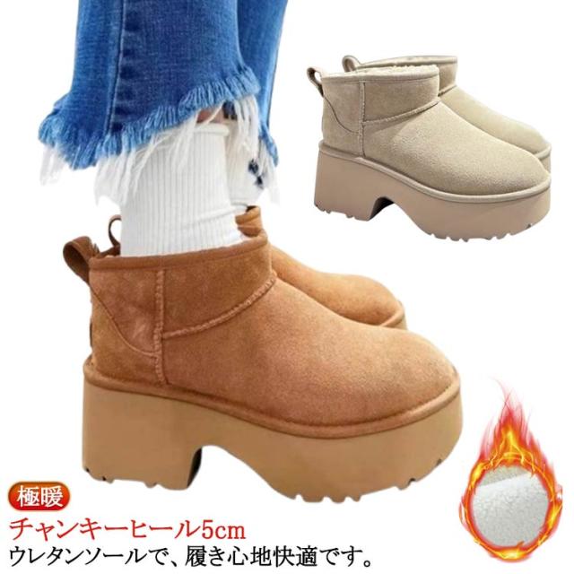 ムートンブーツ ショート 防寒 ショート ブーツ 厚底 ソール ムートンブーツ 厚底 旅行 撥水 厚底ムートン レディース 雪 ムートンブーツ 厚底ブーツ レディース チャンキーヒール5cm 雨 レジャー 暖かい あたたかい ボア ファー ショートブーツ レディース 靴 スエード