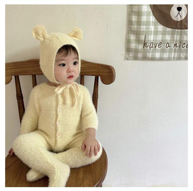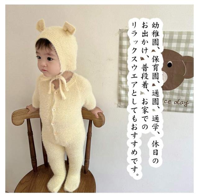 | ベビー用ロンパース!とってもキュート♪ クマ耳付きで見た目もかわいく、あごで止めれるので落とす心配もなく機能性も抜群。 ボタン開閉で着脱が楽、 全身すっぽり覆うので暖かさも逃がしにくいです! 縫製もしっかりで丁寧で、元気に動きまわるお子様にもごあんしん頂きます。 外出も部屋着としても大活躍してくれる秋冬用のロンパース。 幼稚園、保育園、通園、通学、休日のお出かけ、普段着、お家でのリラックスウエアとしてもおすすめです。 | |