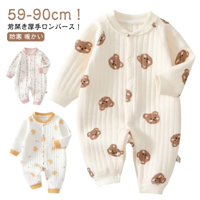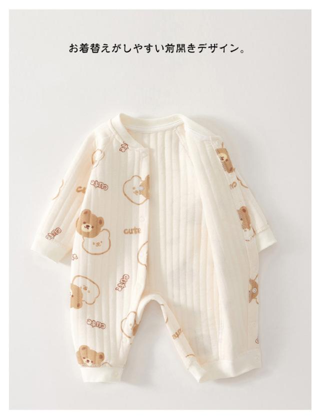 コットン 男の子 73 くま 長袖 ロンパース 女の子 66 中綿 キルト 3重 綿 59 あったか 赤ちゃん 前開き 新生児服 ウサギ おしゃれ かわいい 厚手 ロンパース ベビー服 80 90 ルームウェア 部屋着 パジャマ 新生児 幼児 春 秋 冬 出産祝い ギフト プレゼント