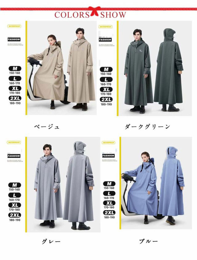 | 自転車用レインコート 男女兼用で、雨の日の通勤やアウトドアアクティビティに最適。 厚手の春季ポリエステル素材で作られており、雨水や風から身を守ります。雨の日でも快適に。 自転車用やバイク用にも最適な大サイズで、カバー範囲も広く、背中やバックパックもしっかりと守ります。 | |