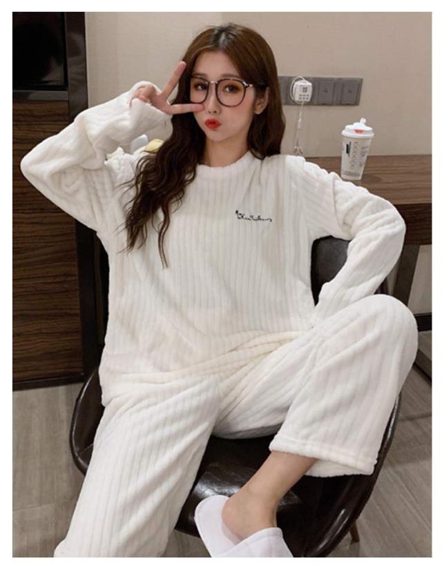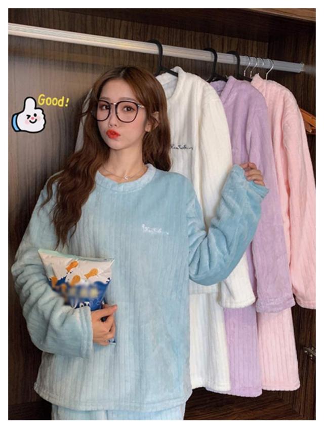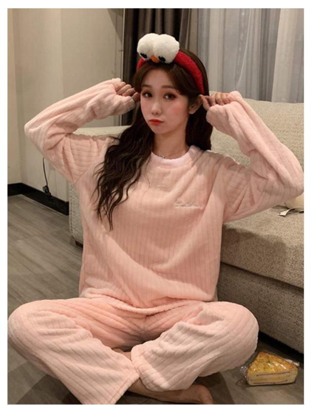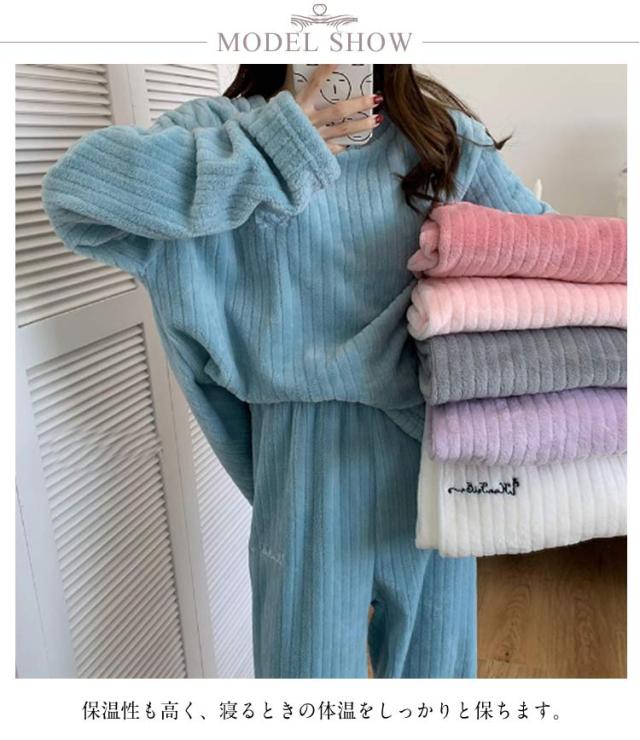 上下セット パジャマ 可愛い 刺繍 冬 秋 レディース もこもこ 部屋着 長袖 リラックス 厚手 寝間着 あったか パジャマ 長ズボン