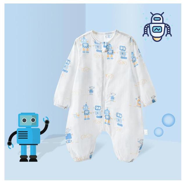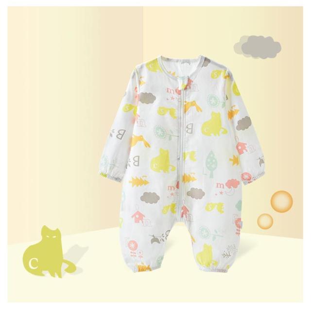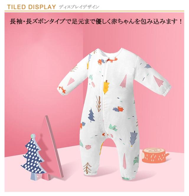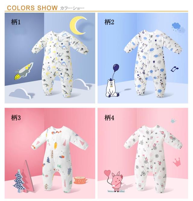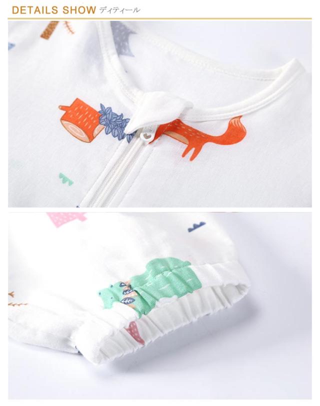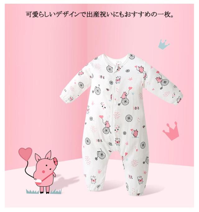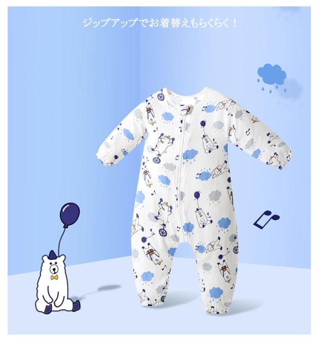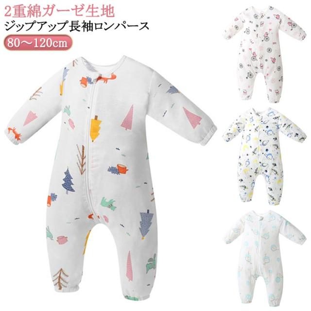 寝袋 ロンパース カバーオール 綿 ベビーロンパース ダブルガーゼ つなぎ パジャマ キッズ 赤ちゃん 総柄 長袖 前開き ファスナー 女の子 男の子 新生児服 前開き 子供服 出産祝い ベビーロンパース 春 秋 夏 80 90 100 110 120cm 送料無料