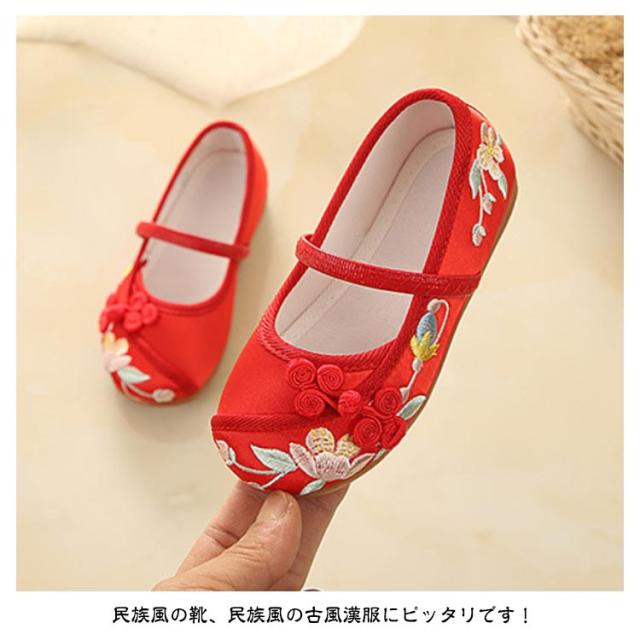 子供靴 シューズ チャイナ靴 こども 刺繍 ストラッブ バレエ靴 結婚式 キッズ 花柄 布靴 子供 コスプレ ジュニア用 コスプレ靴 ダンスシューズ 靴 子供 発表会 かわいい 子供靴 ステージ 靴 七五三 お正月 着物 柔らかい 履きやすい