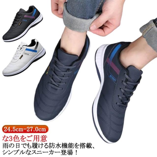 撥水 カジュアルシューズ スニーカー ウォーキングシューズ 幅広 運動靴 軽量 防水シューズ レースアップ ビジネス 紳士靴 合皮 メンズ ゴルフ 防水 ランニング 歩きやすい 通勤 通学 中学生 24.5cm-27.0cm