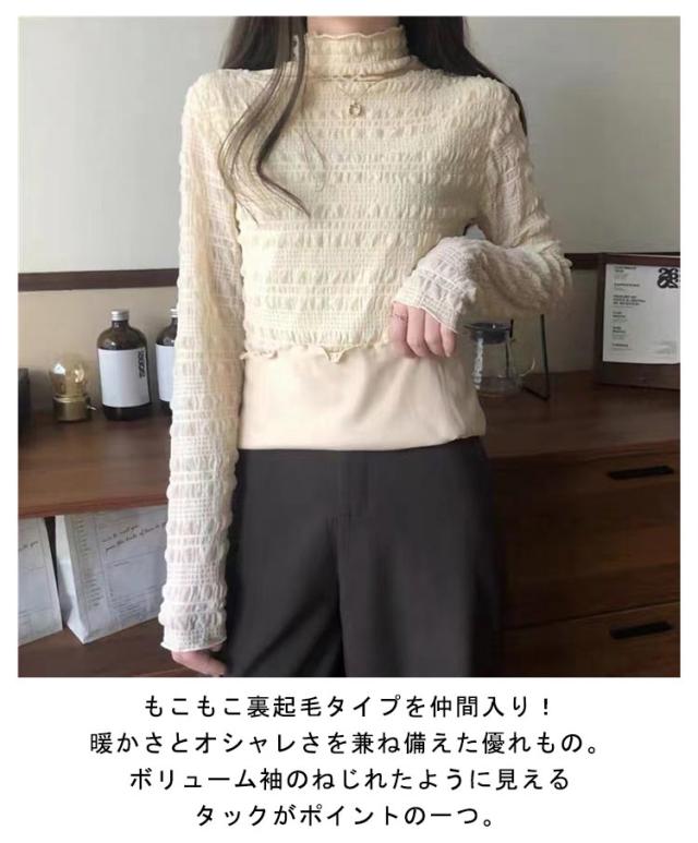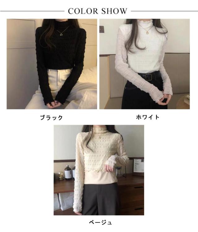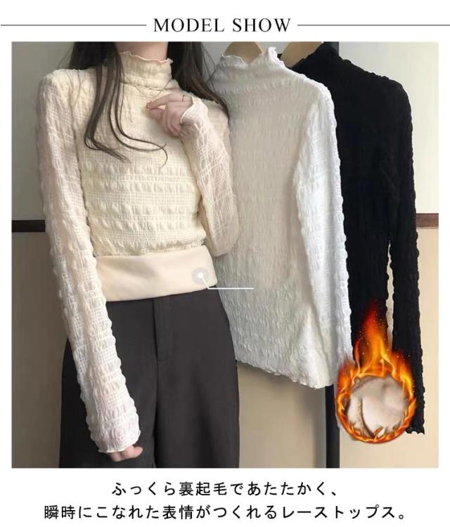 ストレッチ 裏起毛 秋 レースのハイネックインナー トップス 冬 タートルネック 総レース 長袖 ブラウス インナー ハイネック レースブラウス レースのハイネックインナー カットソー プルオーバー 送料無料 着回し 重ね着 通勤 春 着痩せ きれいめ