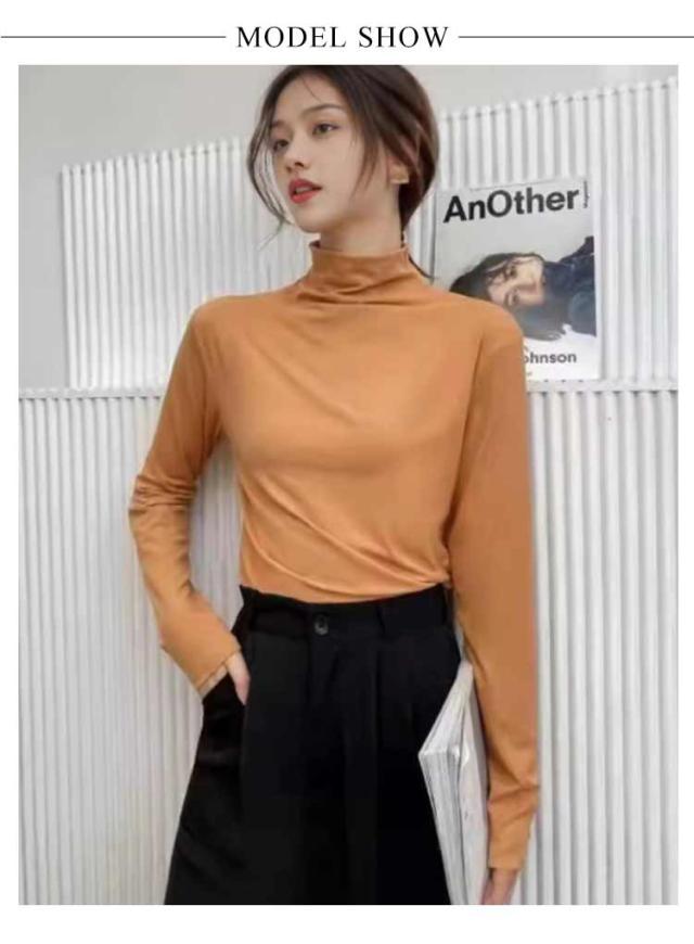 ハイネック インナー ハイネックシャツ レディース 薄手 ハイネック 長袖 インナー トップス 伸縮性 タートルネック カットソー シャツ ボトルネック 下着 肌着 アンダーウェア 送料無料 ブラック ホワイト ブラウン ベージュ 肌色 ブルー ピンク オレンジ グリーン