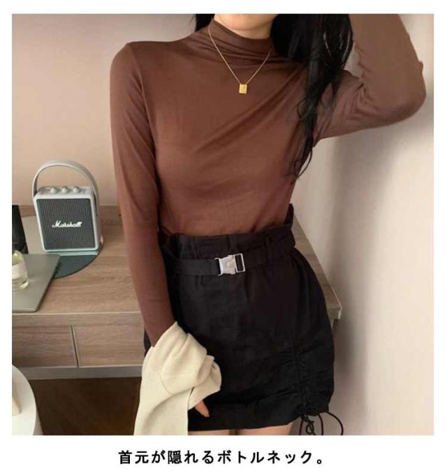 | 秋冬のインナーとして重宝しちゃう! 首元が隠れるボトルネック。 ボトムスを選ばない丈感が嬉しい。 着ぶくれしなくやや薄手の生地感。 ストレッチ性に優れた生地を使用し、着心地楽チン。 トップスとしてはもちろんインナー使いにもおすすめの1着。 豊富なカラーバリエーションで、色違いでぜひ揃えてください。 | |