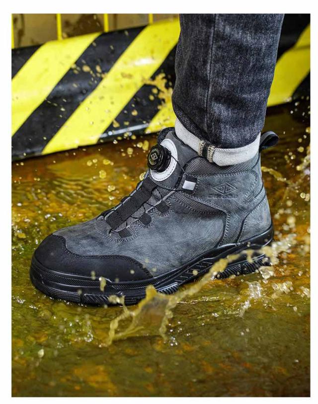 | ダイヤルを回すことで簡単にフィット感の調節が可能な安全靴。 高質な鋼製先芯とケブラー製ミッドソールを採用、つま先と足裏をしっかり保護します。 ダイヤルを時計回りで回せばリールがキュッと締まり、つまんで引き上げれば一瞬でリールが緩み、靴の脱着が可能です。脱ぐのも履くのも超簡単です。 ハイカットデザインにより足首をサポートし、裏ボアの有無を選べるため、季節や用途に応じて最適な履き心地を実現します。 製造工場、現場工事、アウトドア、日常使いなどの場合に全部適用します。 | |