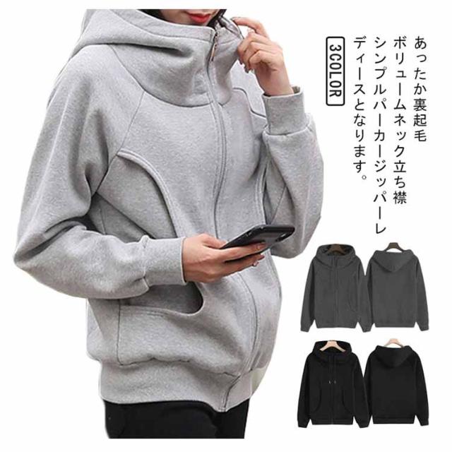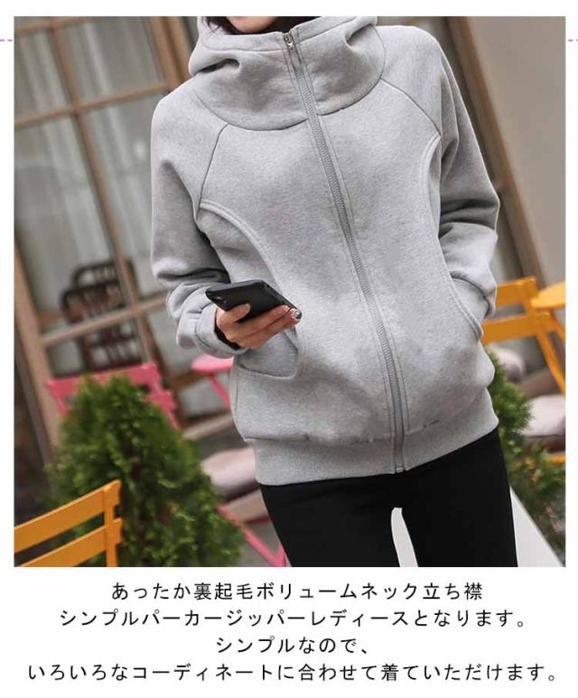 パーカー ジップアップ レディース 裏起毛 ハイネック フード付き パーカ ジップアップ スウェット ジップアップパーカ 長袖 パーカー 冬 秋 ハイネックパーカー送料無料 ボリュームネック