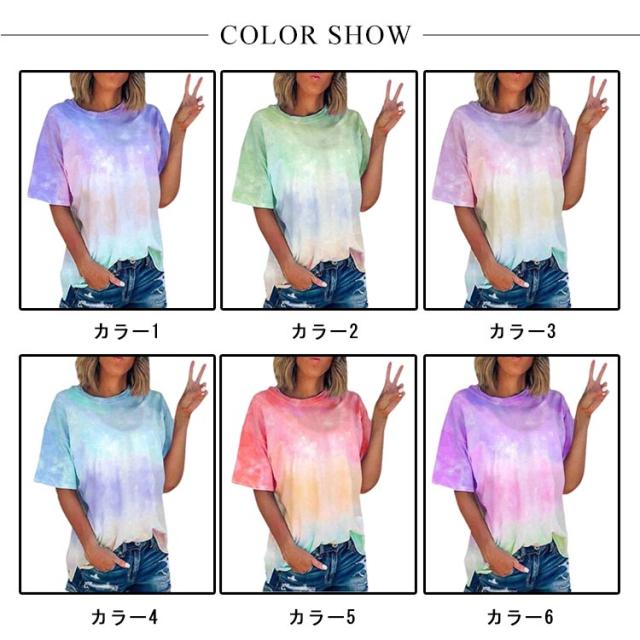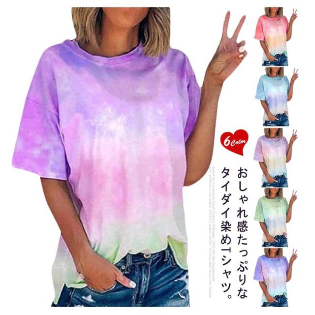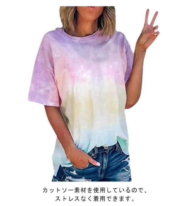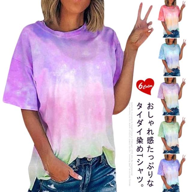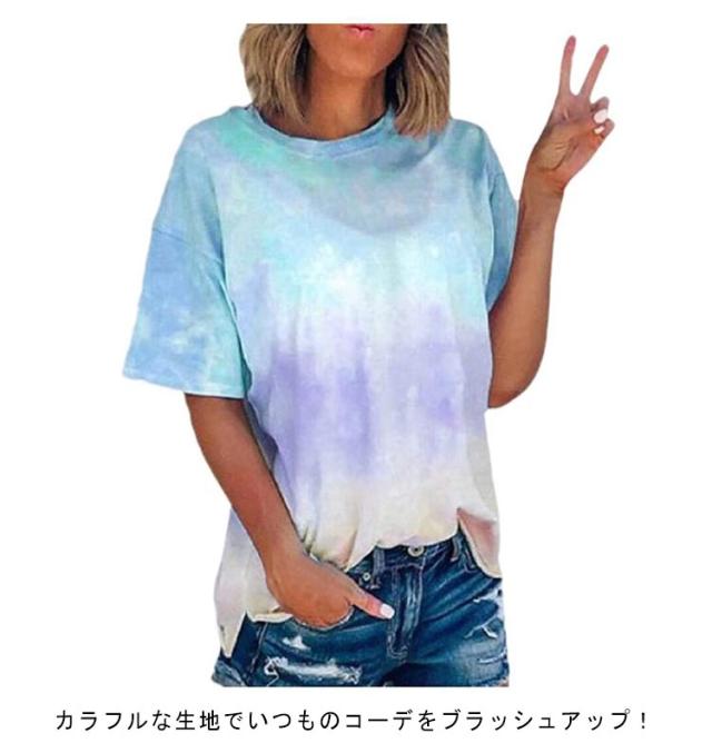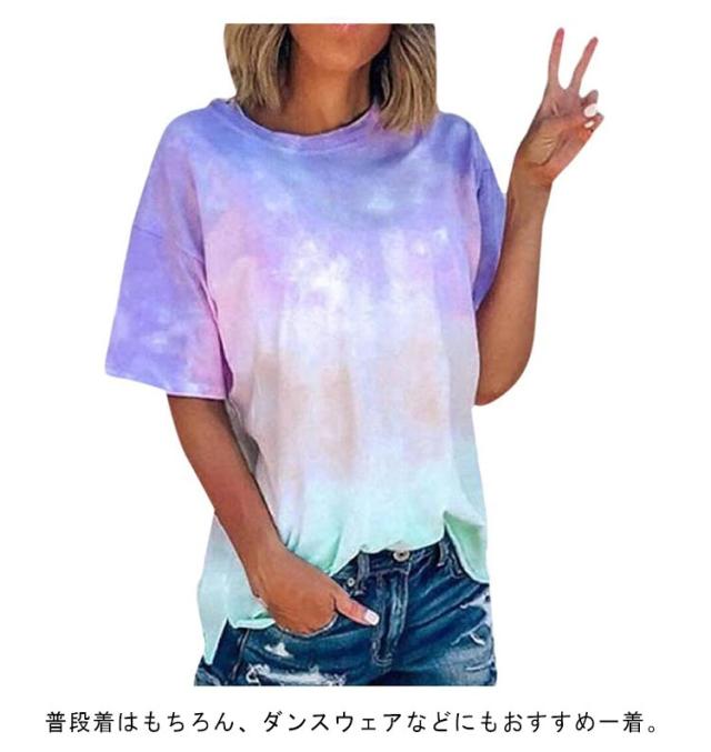 半袖Tシャツ Tシャツ ダンスウェア タイダイ染め トップス 半袖 タイダイ クルーネック レディース 大きいサイズ アジアン エスニック フェス ヒップホップ ダンス衣装 送料無料 ファッション 原宿 ストリート風 かわいい