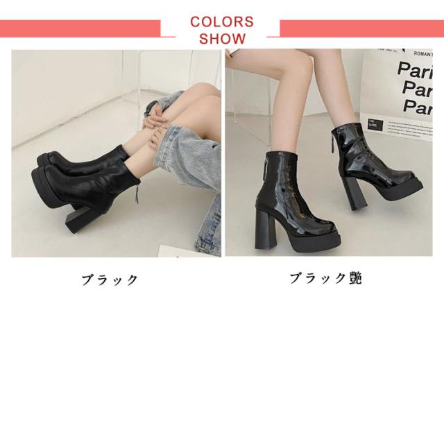袴 痛くない 厚底 レディース ショートブーツ 10cmヒール チャンキーヒール バックジップ 太ヒール プラットフォーム 美脚 厚底ブーツ ショートブーツ ストーム 歩きやすい きれいめ おしゃれ 秋