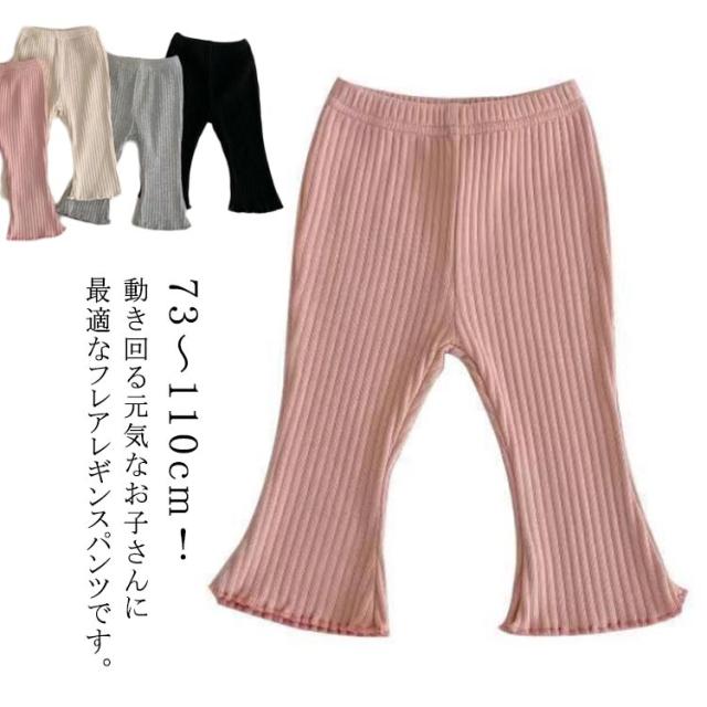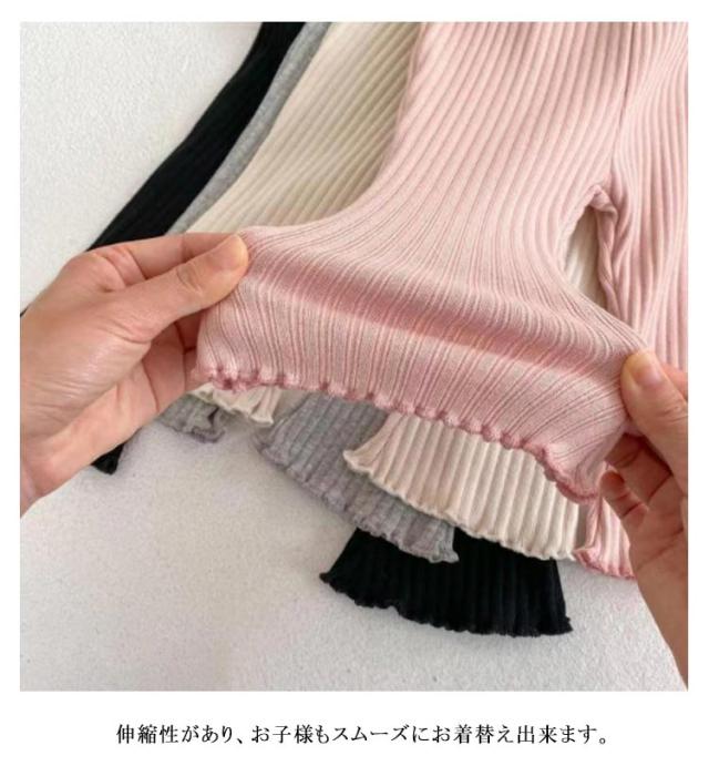 レギパン レギンス 子供服 リブ フレアパンツ 通園 ボトムス レギンスパンツ フリル ベビー ジュニア スパッツ ガールズ 保育園 綿混 無地 ストレッチ メロウ レギンス 小学生 女の子 通学 こども服 73 80 90 100 110cm