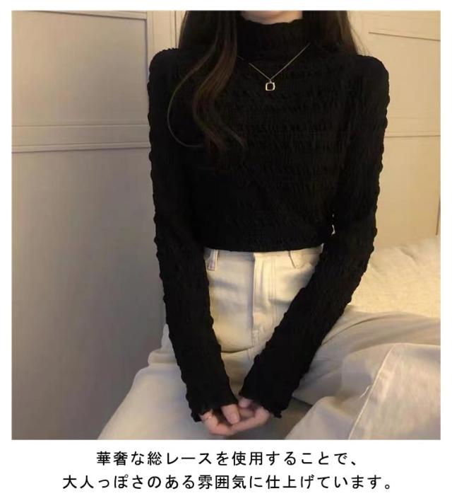秋 ストレッチ 裏起毛 冬 重ね着 インナー レースのハイネックインナー 長袖 レディース ブラウス 総レース ハイネック タートルネック 春 カットソー プルオーバー 送料無料 着回し レースブラウス 通勤 レースのハイネックインナー 着痩せ きれいめ