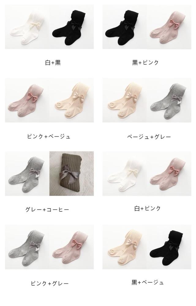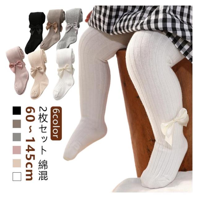 【2枚組】ベビー タイツ 新生児 リボン付き ベージュ 女の子 女の子 【2枚組】ベビー 靴下 発表会 キッズ フォーマル 赤ちゃん グレー ピンク 子供 結婚式 白 秋 冬 七五三 綿混 子供 ホワイト くすみカラー リブ編み 黒 カラータイツ