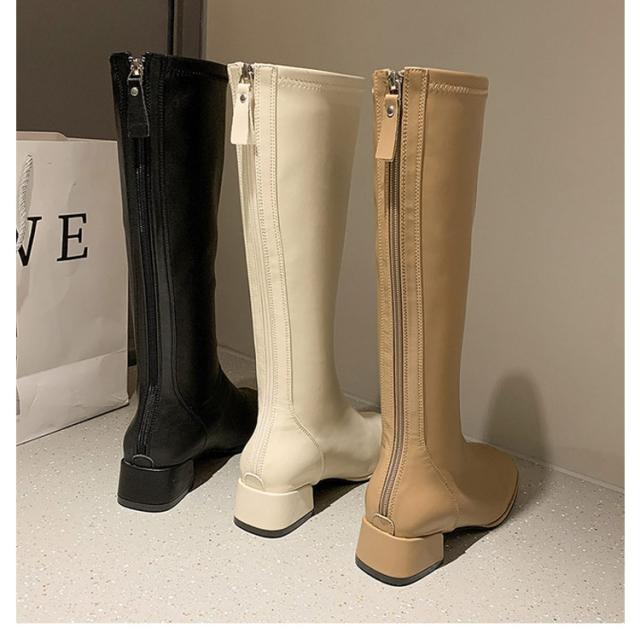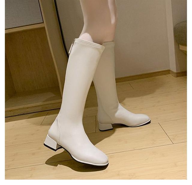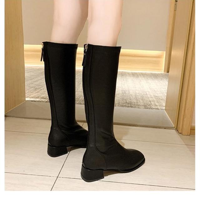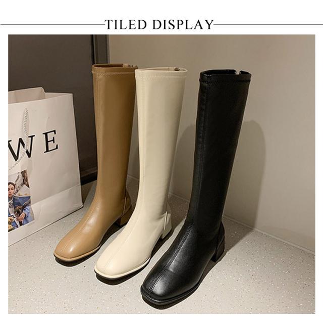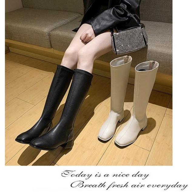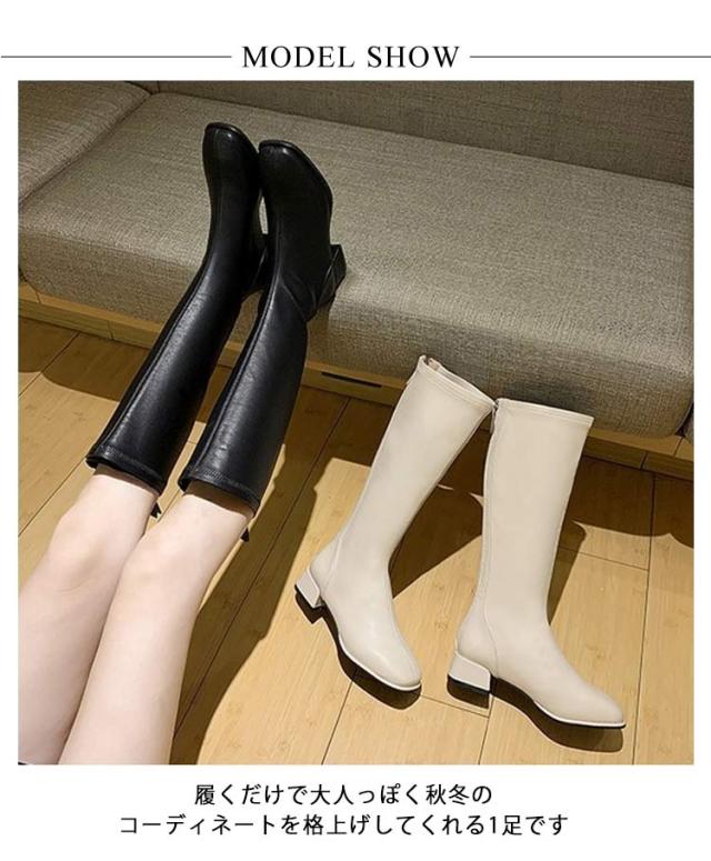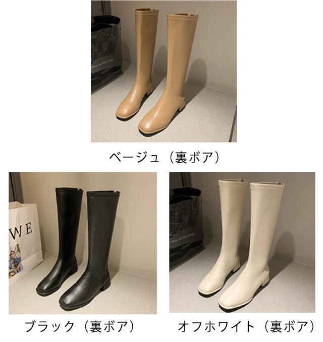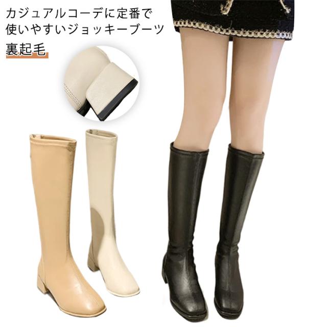 ジョッキーブーツ 美脚 レディース 歩きやすい スクエアトゥ ロングブーツ 靴 裏起毛 ロングブーツ ローヒール 長靴 春秋冬 大きサイズ 厚底 合皮 通勤 通学 バックシッパー 防寒 安定感 送料無料