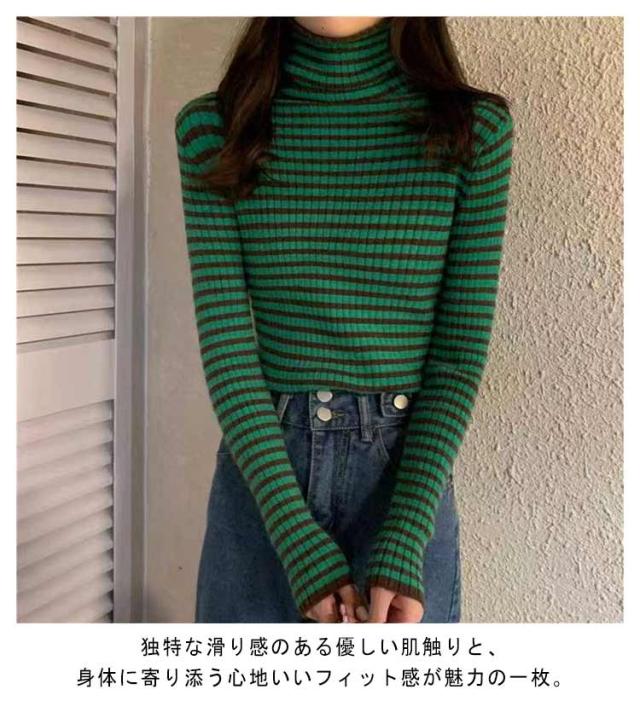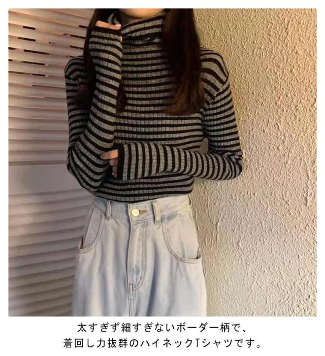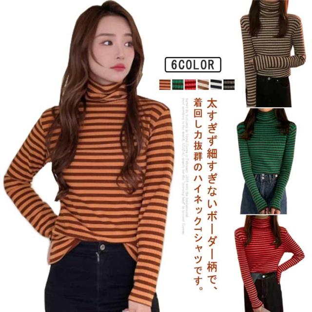 レディース 細身 インナーTシャツ カットソー ストレッチ ボーダー柄 タートルネック 送料無料 トップス レイヤード カットソー 伸縮性 インナー 長袖Tシャツ 着痩せ ハイネックインナー お洒落 カジュアル 重ね着 普段着