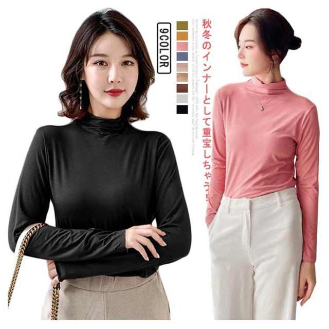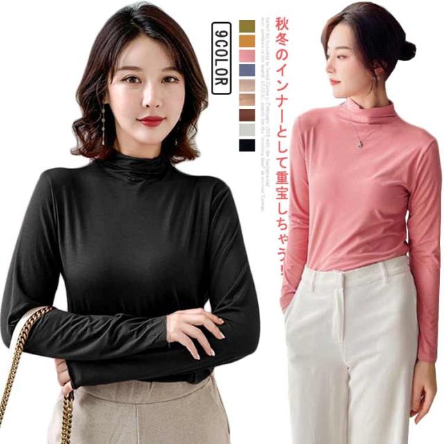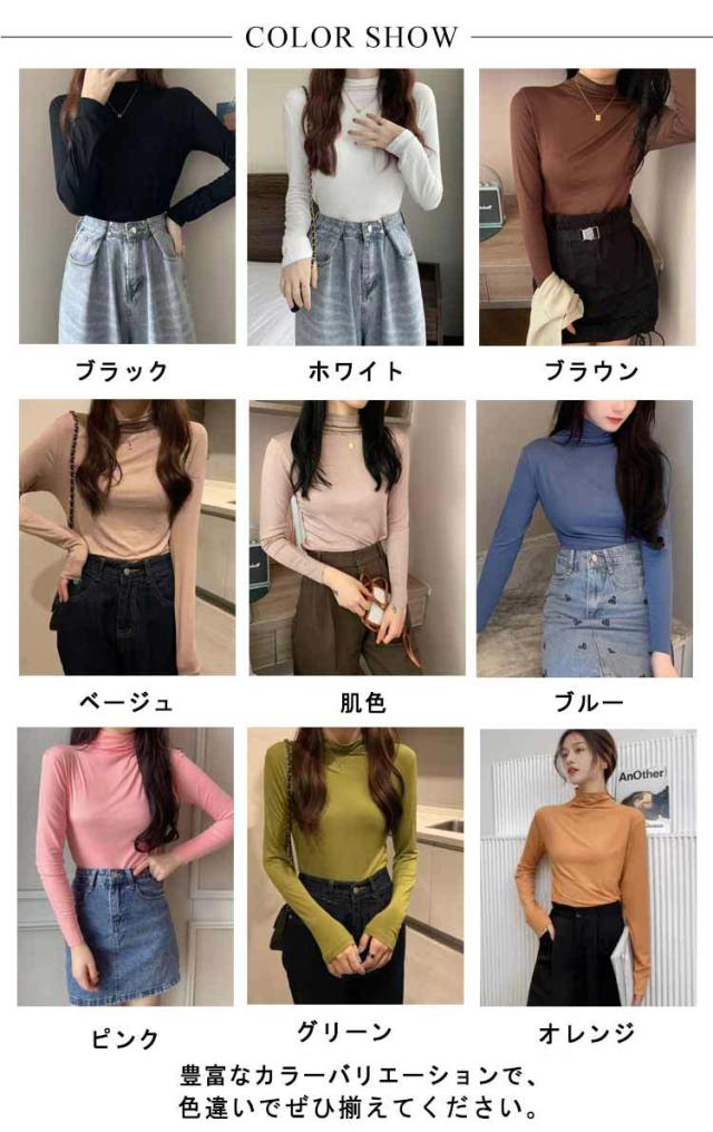 ハイネック インナー ハイネックシャツ レディース 薄手 ハイネック 長袖 インナー トップス 伸縮性 タートルネック カットソー シャツ ボトルネック 下着 肌着 アンダーウェア 送料無料 ブラック ホワイト ブラウン ベージュ 肌色 ブルー ピンク オレンジ グリーン