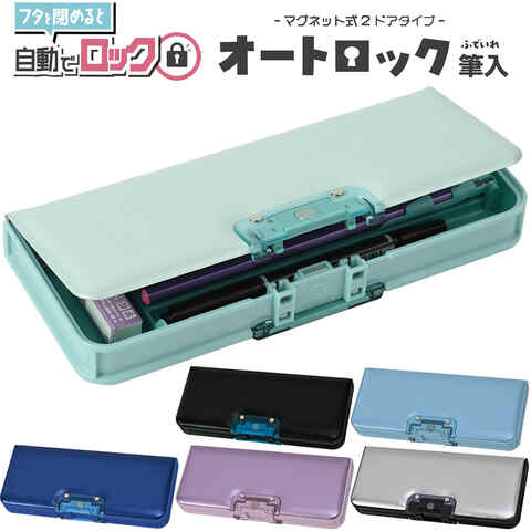 オートロック筆入 マグネット式 2ドア 両面 ペンケース 筆箱 太軸鉛筆対応 コンパクト シンプル コンパクト 小学生 入学 クツワ 送料無料