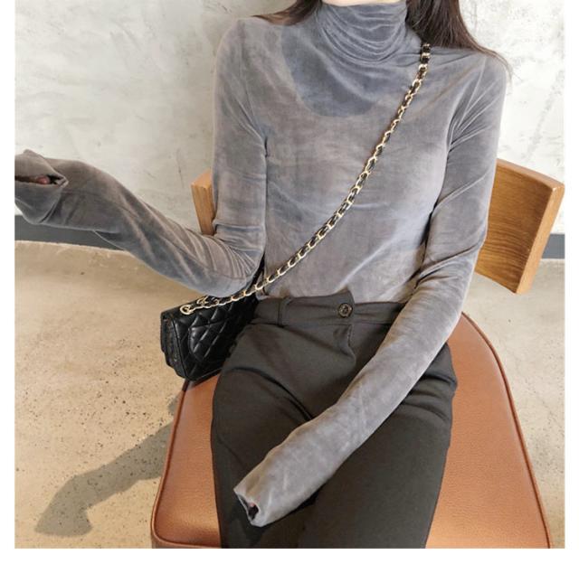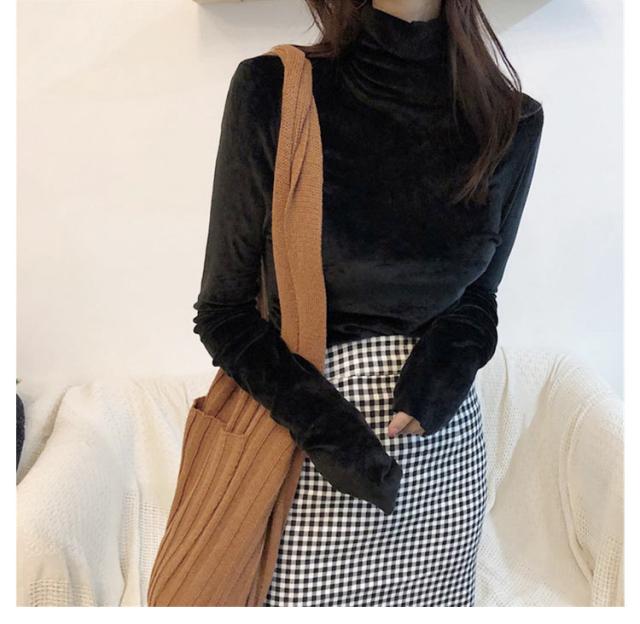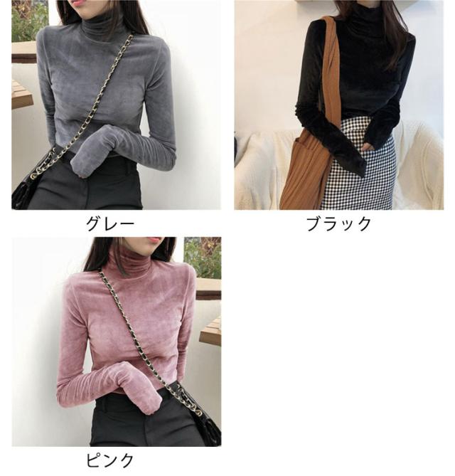 プルオーバー シンプル 長袖 ハイネック 春秋冬 トップス ベロア ベルベット レディース ベロア Tシャツ インナーシャツ 無地 オフィス 通勤 インナー レイヤード 防寒 保温 普段着 タイト キレイめ お洒落