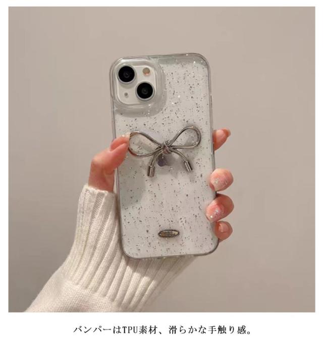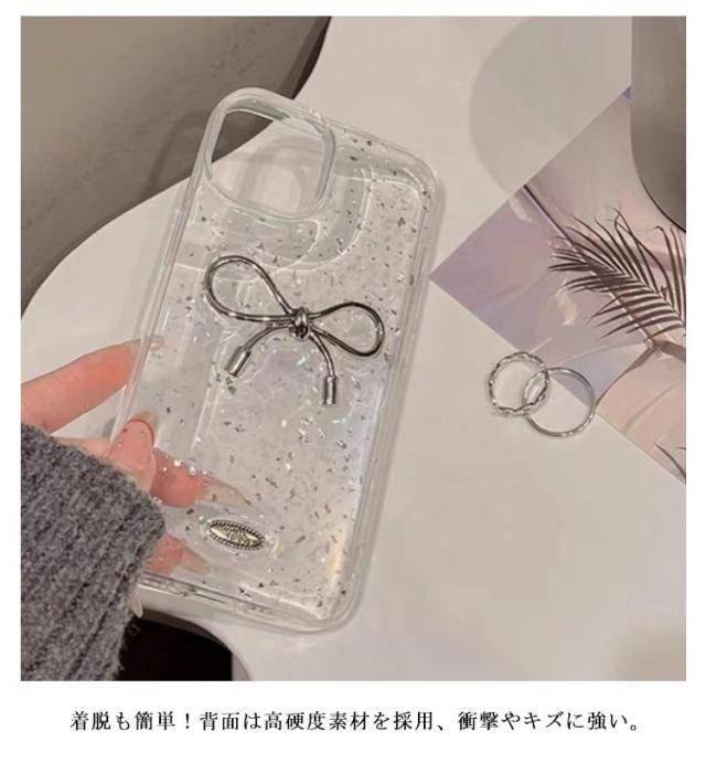 iPhone15 iPhone14 iPhone12 ケース ケース iPhone13 iPhone11 iPhone13 ケース ケース ケース iPhone16Pro iPhone16 16 Pro Max iPhone16 ケース iPhoneケース シルバー リボン きらきら ラメ入り 銀箔 クリア スマホケース かわいい 韓国 カバー