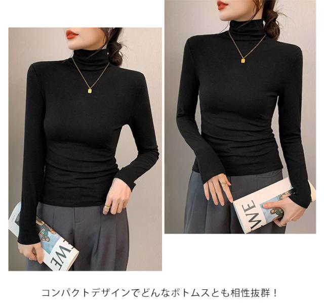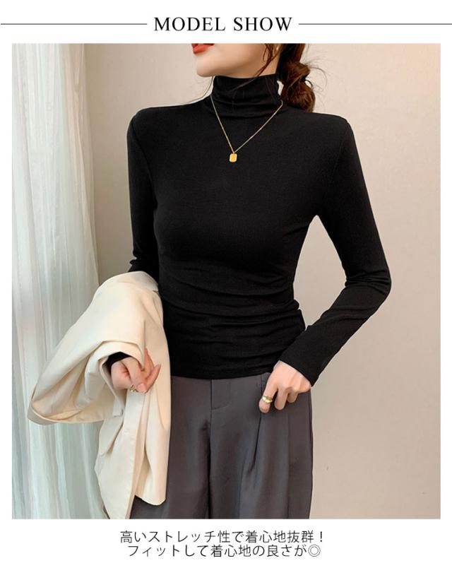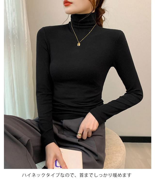 長袖 カットソー 長袖 ゆったり ハイネック 無地 Tシャツ 下着 大きいサイズ タートルネック レディース 防寒インナー ハイネック インナー インナーシャツ 伸縮性 防寒 暖かい 重ね着 レイヤード風 着痩せ お洒落