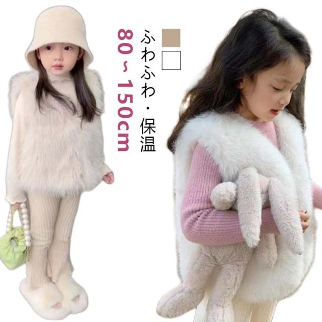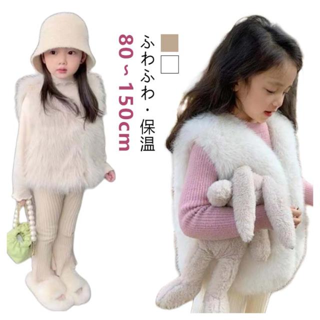 キッズ 130 羽織り キッズ 子ども服 90 110 白 100 140 ベビー 子供 ファーベスト フェイクファー アウター 女の子 可愛い 120 ベスト もこもこ フェイクファーベスト 150cm ジレ ふわふわ エコファー おしゃれ あったか