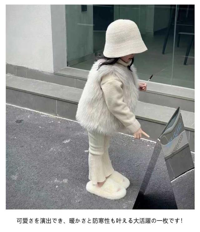 | 【80〜150cm】【ふわふわ・保温】 お子さんの可愛さをより引きたせてくれます。 見た目も着心地も暖かキュートなフェイクファーベスト。 軽くて動きやすいだから、保温性と着心地が抜群! 可愛さを演出でき、暖かさと防寒性も叶える大活躍の一枚です! | |