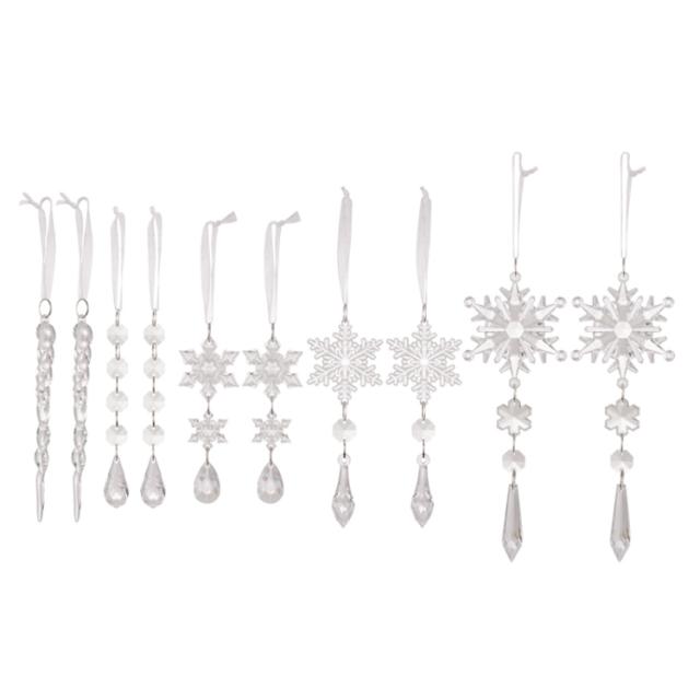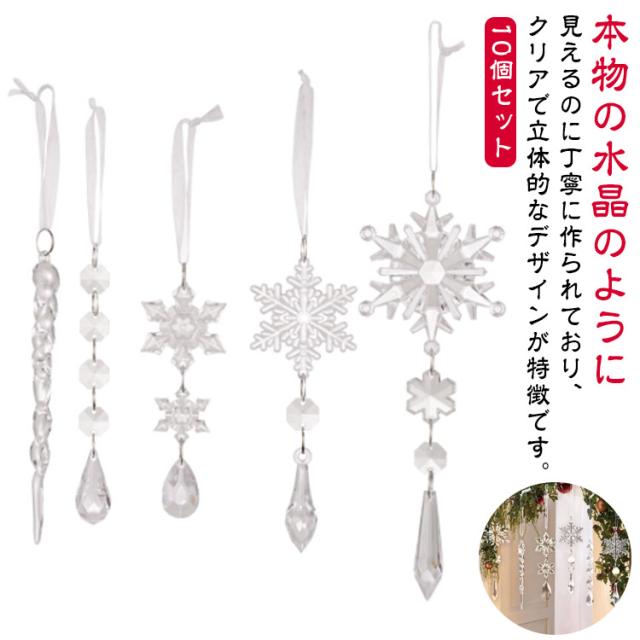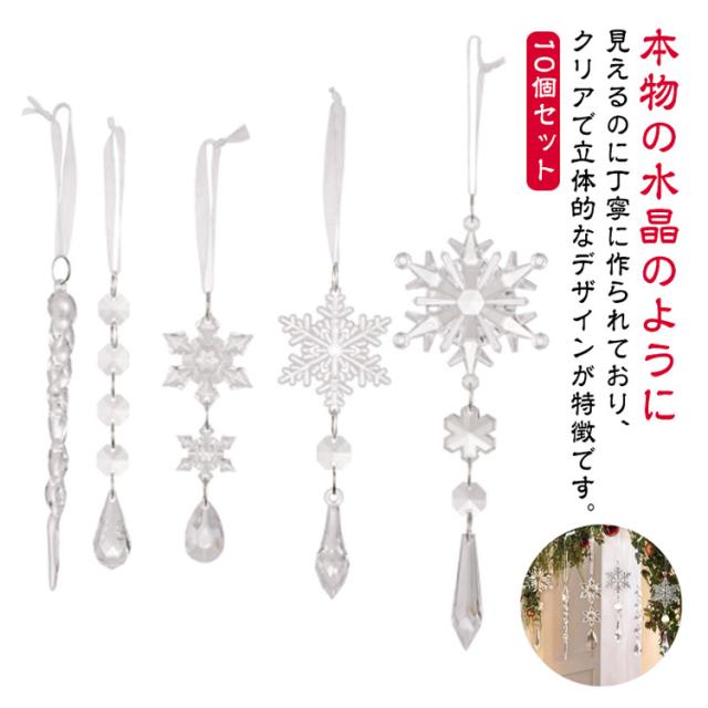 クリスマス クリスマス 飾り吊り下げ ツリー つらら ドロップ 雪の結晶 掛け オーナメント クリア クリスマス 氷柱 スノー 北欧 アクリル オーナメント 10個セット 壁 パーティー 玄関 店舗装飾 デコレーション 飾り付け インテリア 装飾