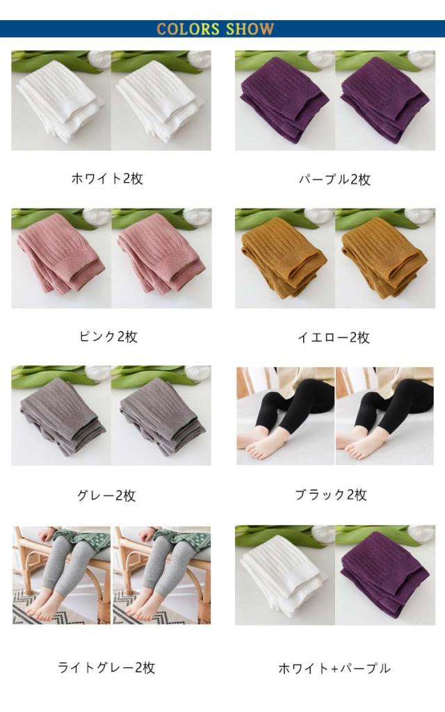| 【2枚セット】【80〜130cm】【7color】【リブ・綿】 アクティブな動きの邪魔をせず、快適に過ごせます。 きちんと身体のラインに沿ってフィットしてくれるコットンリブ素材。 ロングシーズン使える、程よい生地の厚みが◎ 【寒い日のオシャレにも便利な10分丈】 チラ見え防止、冷え対策に、防犯にも。 | |