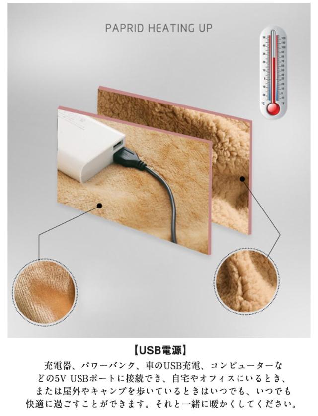 | 電気ひざ掛け。 【USB電源】充電器、パワーバンク、車のUSB充電、コンピューターなどの5V USBポートに接続でき、自宅やオフィスにいるとき、または屋外やキャンプを歩いているときはいつでも、いつでも快適に過ごすことができます。それと一緒に暖かくしてください。 【ハンドポケット】ハンドポケットの中がUSBで暖かくなるので手先が冷える方にもおすすめです。 【チェストベルト付き】しっかりとまるので肩掛けでもズレ落ちにくく、ウエストで巻いてもご使用いただけます。 【触り心地】ふわふわともこもこの素材感で手触りも抜群! 【用途】家でも旅行でも飛行機でも、テレビを見たり、本を読んだり、冬にリラックスしたりしながら抱きしめるのに最適です。 | |