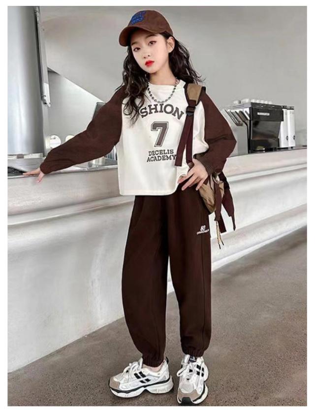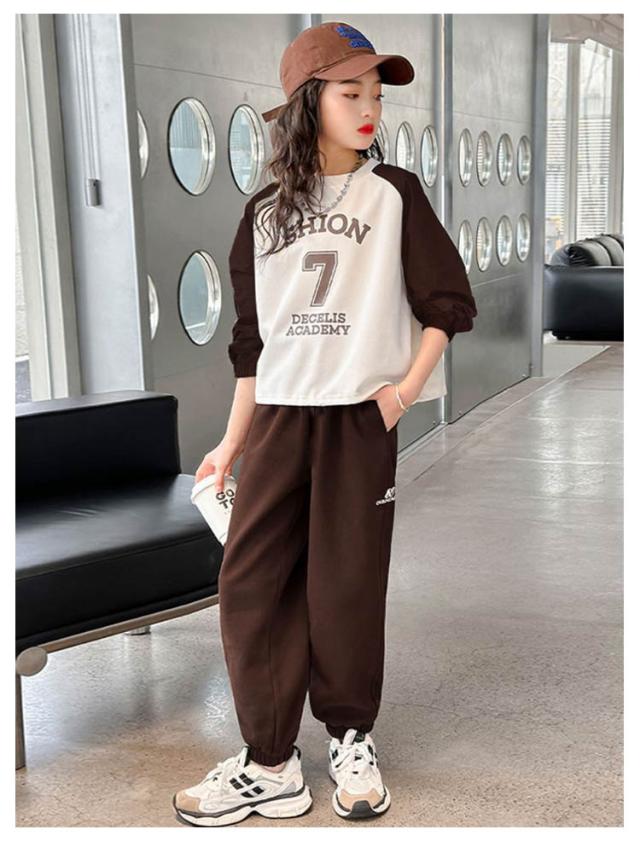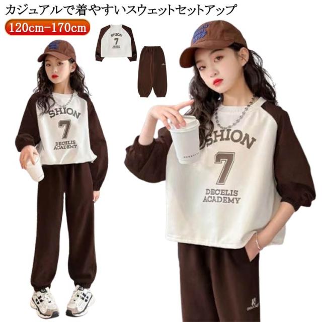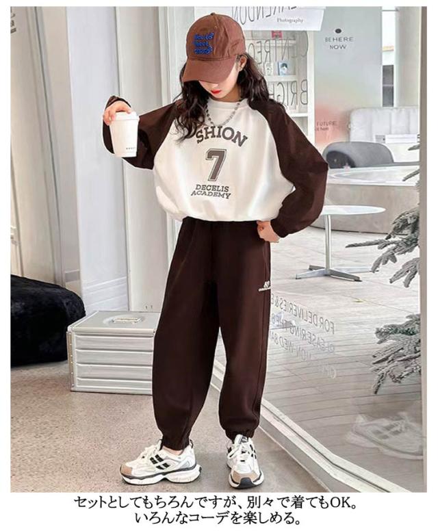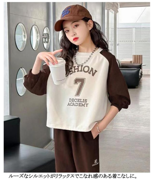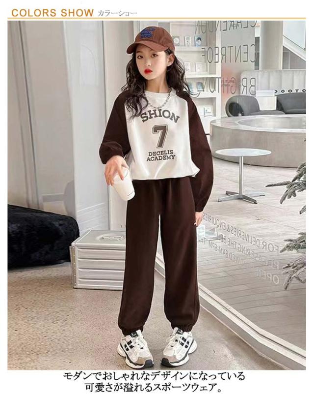 女の子 スウェット トレーナー キッズ服 ロンt 春秋 通学 ロングパンツ バイカラー セットアップ 長袖Tシャツ ジャージ 2点セット スウェット プルオーバー 裾ゴム 長ズボン 普段着 子供服 登山 カジュアル