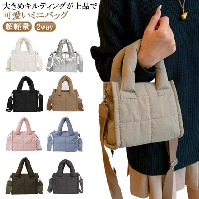 ふっくら可愛い ミニバッグ ショルダーバッグ ハンドバッグ 上品 キルティングバッグ 2way 超軽量 斜めがけ 秋冬 ミニトートバッグ スクエアバッグ 小さめ キルティングバッグ ナイロン かばん ふっくら可愛い 韓国
