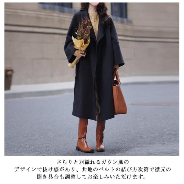 膝下丈 レディース 秋冬 ウールライク ロング丈 ガウンコート ラップコート コート おしゃれ 30代 ウエストベルト ロングコート ガウンコート ポケット付き 厚手 エレガント きれいめ 大人可愛い オーバーサイズ 20代 チェスターコート 40代 50代
