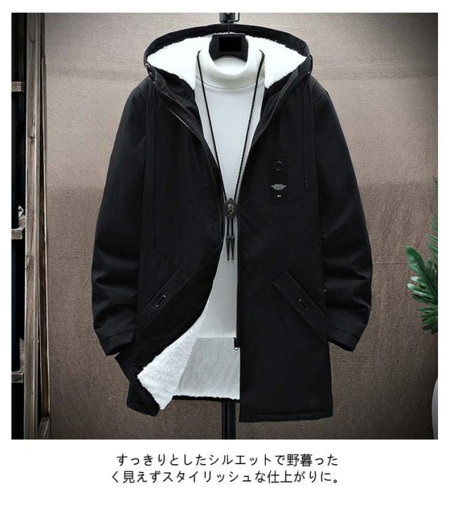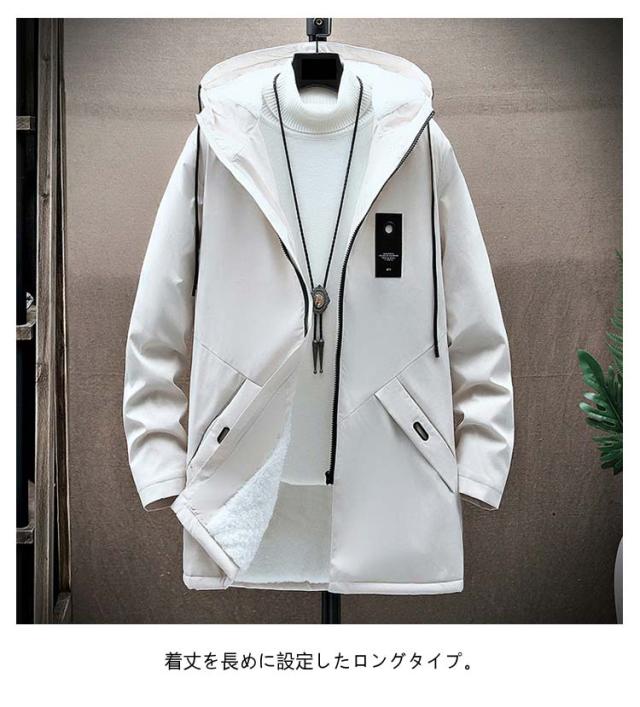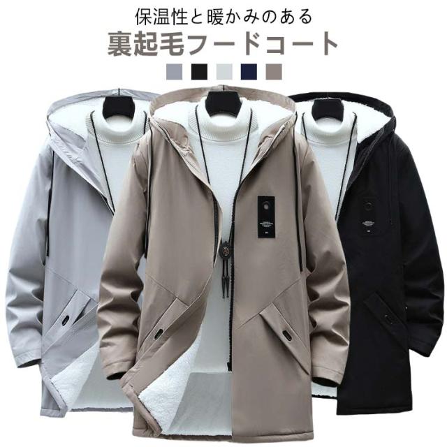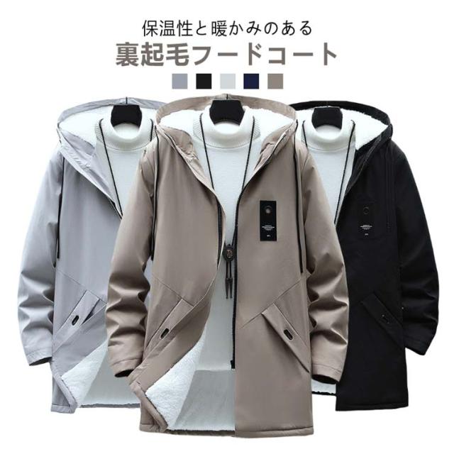 メンズ コート アウター 裏起毛 秋冬 トレンチコート 裏ボア フード付き 秋 カジュアルジャケット フードコート 厚手 保温 細身 スリム ミドル丈 もこもこ ふわふわ 防寒 冬 暖かい 軽量 中綿コート 学生 通勤 通学 黒 紺 大きいサイズ