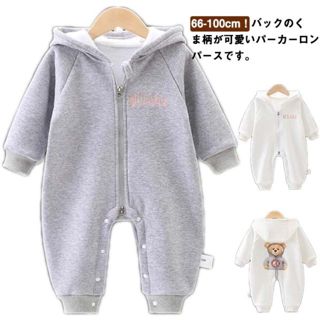 ベビー カジュアル 秋 スウェット パーカー ベビー ベビー服 くま 女の子 フード付き オールインワン 綿 カバーオール コットン 新生児 ベビー 秋冬 長袖 可愛い 春 男の子 新生児服 こども服 くまさん 子供服 子ども服 赤ちゃん ロンパース 出産祝い 66 73 80 90