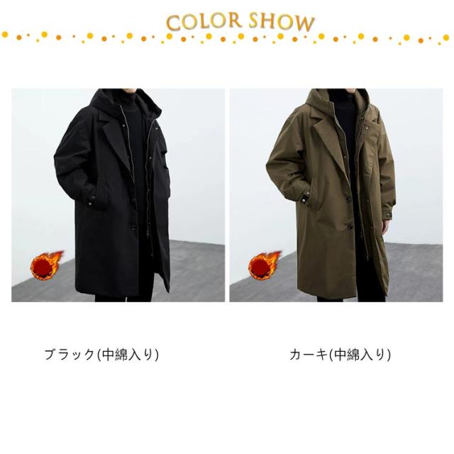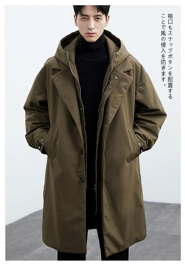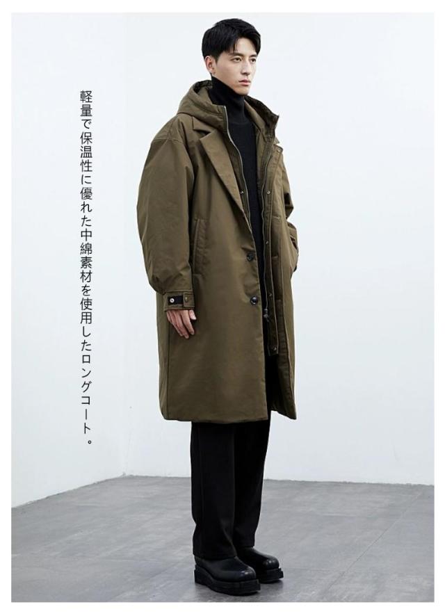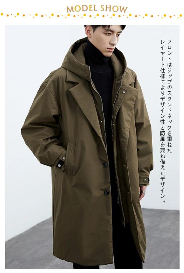 レイヤード仕様 中綿 コート トレンチコート コート ミリタリーコート フード付き 重ね着風 モッズコート メンズ アウター ロングコート キルティングコート ジップアップ 秋冬 ロング丈 中綿コート ミリタリー 大きいサイズ 無地 軽量 冬服 冬物 黒 カーキ