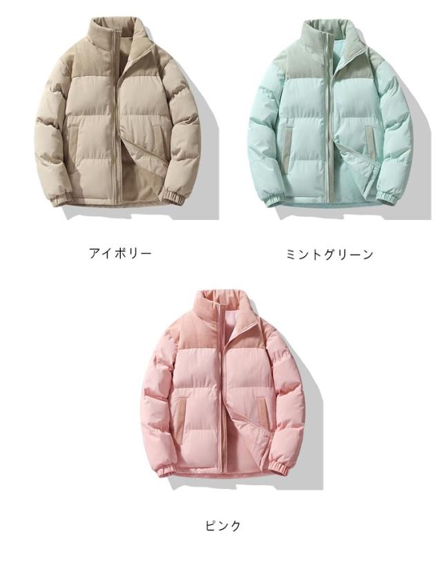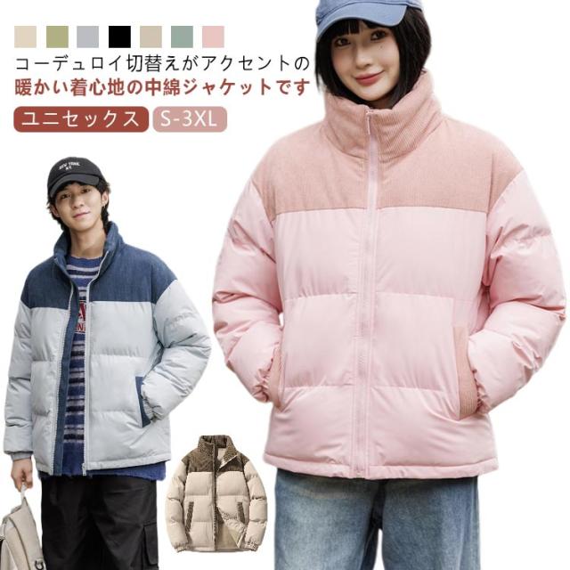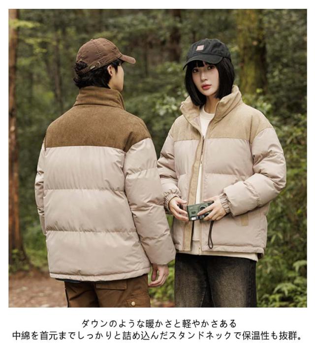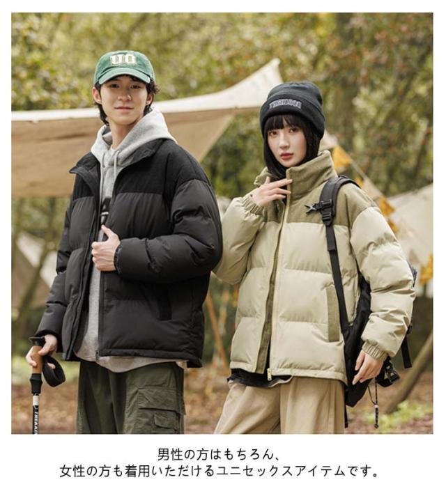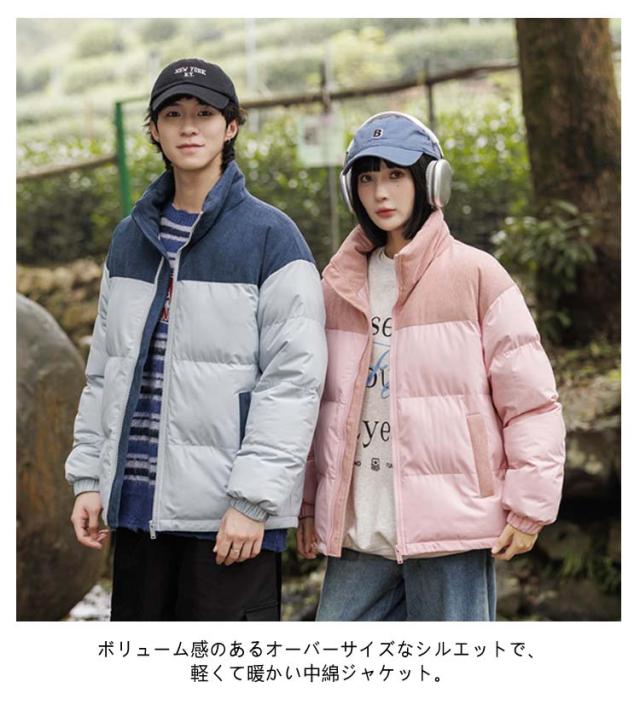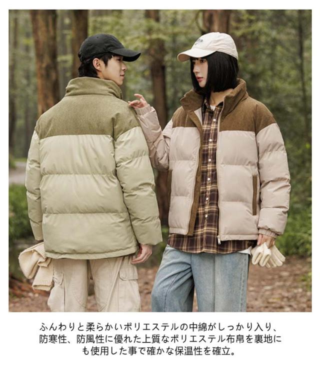 暖かい メンズ 中綿ジャケット 中綿ブルゾン 中綿コート 軽量 中綿ジャケット レディース ダウンジャケット 異素材 切替 秋 ショート丈 ハイネック アウター カジュアルジャケット 中綿 厚手 冬 立ち襟 保温 防寒 ゆったり 配色 バイカラー 大きいサイズ