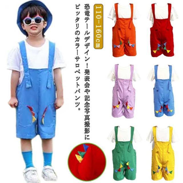 女の子 サロペットパンツ カラーパンツ かわいい恐竜テール!キッズ 保育園 ダンス衣装 カラフル かわいい恐竜テール!キッズ サロペット 男の子 幼稚園 オーバーオール 発表会 卒園式 演出服 応援団 ショートパンツ